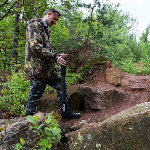 With the operating mode Magnetometer, anomalies in the magnetic field are immediately visualized on the smartphone display. In this way, potential finds like artifacts, treasure chests, old ammunition and further ferrous objects can be detected very easily. Experienced treasure hunters use the Magnetometer before scanning the target area with 3D Ground Scan in order to clear the scan field of smaller objects close to the surface.