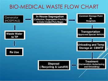 There is a big network of Health Care Institutions in India. The hospital waste like body parts, organs, tissues, blood and body fluids along with soiled linen, cotton, bandage and plaster casts from infected and contaminated areas are very essential to be properly collected, segregated, stored, transported, treated and disposed of in safe manner to prevent nosocomial or hospital acquired infection.