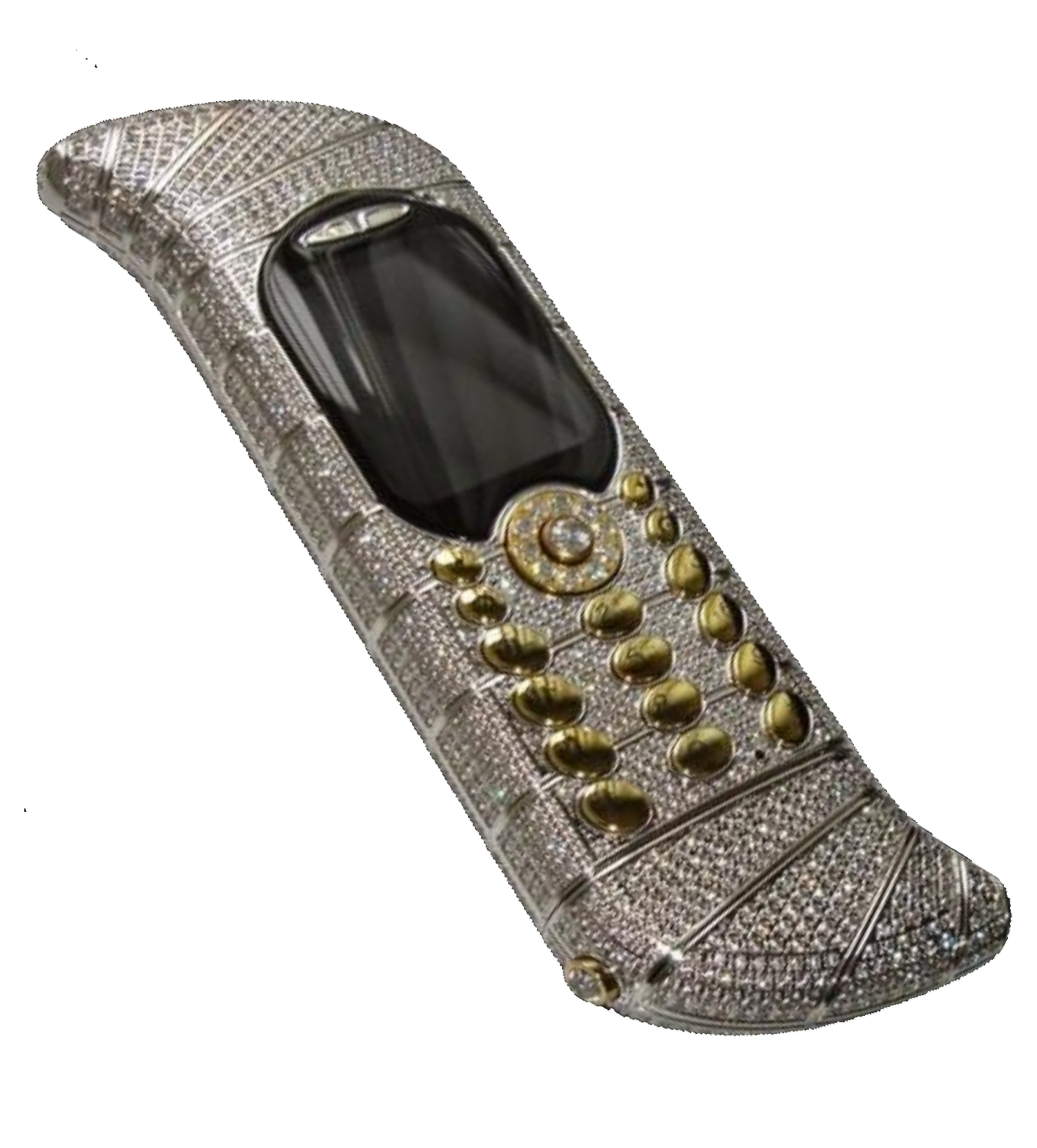 The Goldvish Le Million is shaped like a dagger and is available in yellow, white, rose, and gold. It was designed by Emmanuel Gueit and launched in Switzerland, and is considered the most expensive phone ever sold. It has the latest in mobile technology and is listed in the Guinness Book of World Records as the most expensive and exclusive phone in the world.